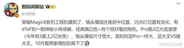 综上信息可以看出来,手机影像的竞争已从像素战争转向传感器尺寸和算法调校的全面较量。荣耀Magic8 Pro搭载的2亿像素大底潜望镜,然后搭配一系列的配置规格,实力这块,感觉不会有什么压力。